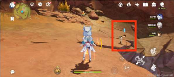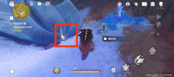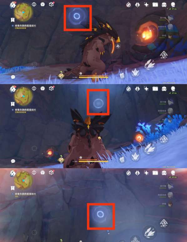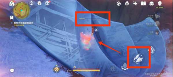 5、观察四周的墙壁上会发现三个白色波纹,爬墙后靠近拾取即可;