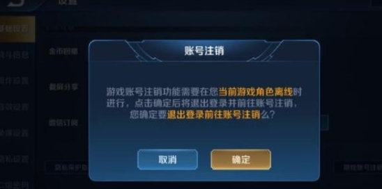 而在S18赛季新版本更新之后,网友们发现,在退出游戏的界面,右下角多了个按钮,游戏账号注销,小精灵处于好奇,也是点了一下,然后又弹出了个界面,提示游戏账号注销功能需要在你当前游戏角色离线的情况下才能进行,而在点击确定之后,又转到了另一个界面。
