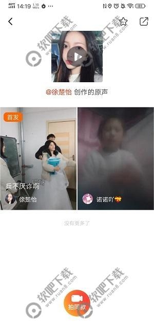 3、进入视频原声界面后可以看到视频原声的原视频以及使用过的其他用户,点击上方的【收藏】选项即可将原声进行收藏;