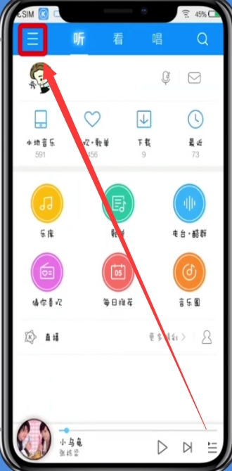 1、打开酷狗音乐,点击左上角的图标,