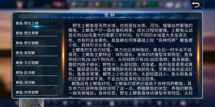 主要介绍了中国现有的普通鱼种和稀有鱼种的名称、种类、分布环境、生活习性和味型等相关信息,帮助你们在游戏及现实生活中精确识别目标鱼种。