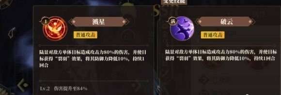 在技能方面,敌人生命越低陆景的暴击率越高,而他的初始暴击率也是S,比较差的是他的防御力。