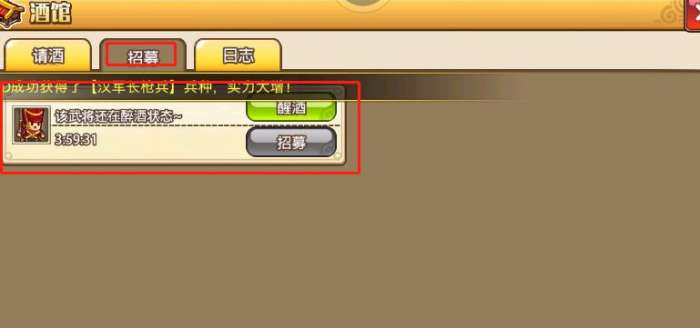 猜拳最终胜利后,武将会跑到【招募】里,需要等待一定时间后才可进行招募,可消耗道具解酒药缩短等待时间