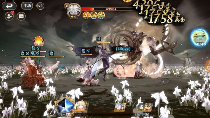 然后是实战,先手固然好,以上述阵容为例,基本没什么好说的,一套过去对面就没了,需要注意的是:1.如果我方蚩黎未成功推条对面蚩黎,对面一定会反推,观察好双方行动顺序和状态(主要是两边的天狐和常羲),天狐被沉默意味着后面的技能都无法释放,天狐没被沉默的话就要看谁的控制位位置靠前且未被沉默,可以补一波控制继续压着打,双方同理;2.如果我方成功把对面打残,那么要注意在我方共工收割的时候,考虑到很多玩家喜欢带天门(复活灵器),我方共工的大招可以不瞄准对面共工,优先瞄准对面其他残血(这里根据情况自己选择是否防对面天门,因为这么打的话要把握好伤害,需要多打几局摸索),天门会复活第一个被球打死的镜灵,可以防止对面共工复活反打。
