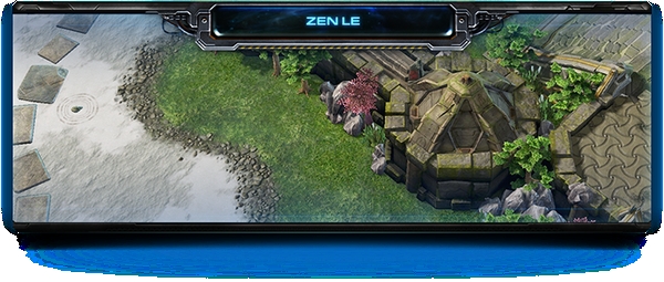 这张地图位于禅寺庭院中,地图旁还有两处锦鲤池。这张地图的特色是通往自然区域的两处较小的入口。第一个入口是一条直通对手基地的捷径,虽然只有一格的宽度,但可以通过采矿来扩大缺口。另一处要道有6格宽度,通向三矿的位置。在中场区域有两组晶体矿排成了墙壁,道路仅有一格宽。除非你开采出一条道路,否则大型部队在此行进缓慢。这张地图还有经过进一步改动后的立柱悬崖。