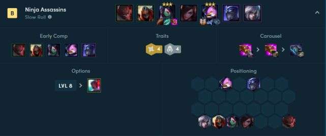阿卡丽和卡特琳娜还有男刀在这个版本都是伤害很高的刺客,成型快节奏快,前排配斗士或者三国都可以。