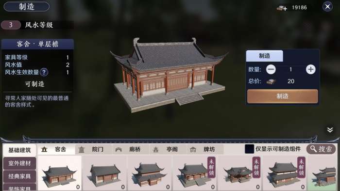 7-8级就需要大家通过制造家具等方法硬提升了,可以通过种植不同种类的花和树木,摆放在庭院里,可以加很多风水。