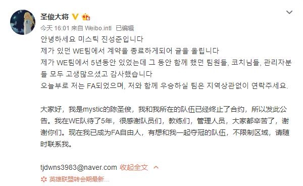 英雄联盟MY离队的消息已经传出,很多人为此感叹,LPL方面,WE的Xiye和Mystic中下双C宣布合约到期成为自 由人,LCK的Gen_G也在本日宣布了Rascal、Clid、Bdd加盟,和下路Ruler组建银河战舰!