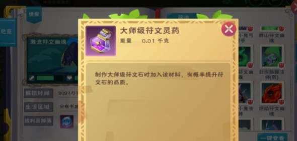 另一个重要道具符文石,可提升魔法伤害,也需要在魔法台制作获得。