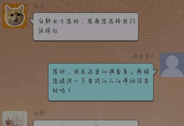 8、白静真实的想法“真不该来找侦探社.......这样下去一定会暴露的。”之后开始一段比较长的文字对话。