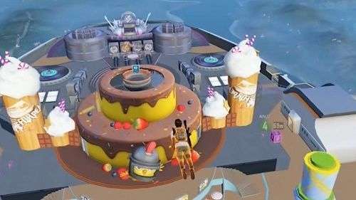 在飞艇上不只有舞台派对,还有泳池派对。在泳池上还有一个大炮台,玩家可以用这个炮台发射自己,将自己发射到飞艇中间,是不是很刺激!