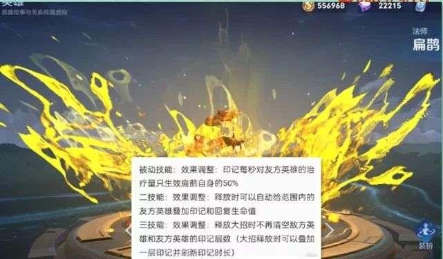 扁鹊这次也是迎来了重要调整,2技能自动给范围内的友军叠加印记和回复生命值,经过实测范围还是比较大的,不像之前辅助回血能力基本形同摆设,大招开启之后也不再清除印记,这次的加强可谓是史诗级提升,让人回到了之前坦克荣耀时代的回血之争,也许这次扁鹊加强后中路迎来大变天,毕竟这可能会诞生出一种新的打法。