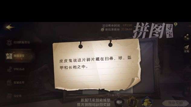 哈利波特皮皮鬼说这片碎片藏在扫帚、球、盔甲以及长袍之中,这个就是10.24今天的线索之一,怎么找到对应的碎片位置呢,下面就来介绍下哈利波特皮皮鬼说这片碎片藏在扫帚线索在哪。