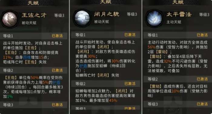 而另外貂蝉自身带的天赋效果叫做闭月之貌,利用这个天赋效果,她也可以让队友对于其他的男性武将输出的时候,在伤害数值上面有30%的提升,因为当前利用貂蝉的这个天赋达到3级的话,另外增加的就是让张角能够触发的追击次数更多一些,次数提升起来之后这里还要注意追击能够造成伤害的话,其中转化的互动能力也会让貂蝉有足够的生存机制,所以当前选用它闭月的状态对敌方造成伤害的话,能够针对一个男性武将造成的克制类型效果会更高一些。