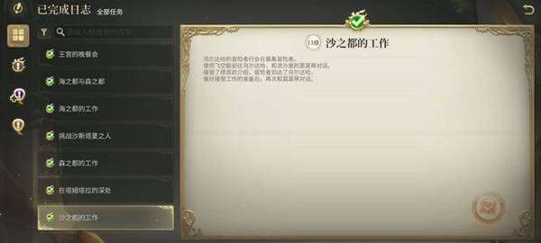 主线任务推进到10级并完成任务【沙之都的工作】后