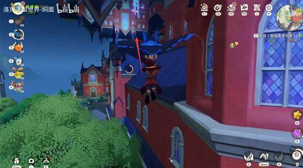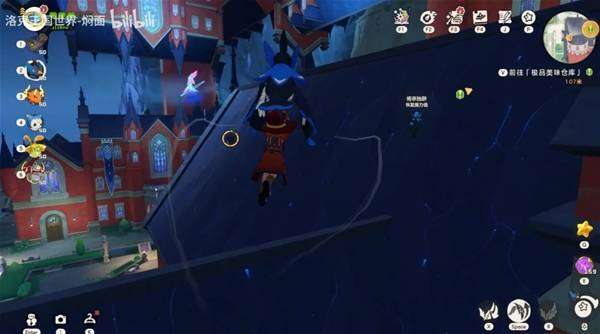 洛克王国世界极品美味仓库位置在哪,接完任务之后向着红色箭头的位置出去,出来后继续沿着红色箭头方向飞,到达前面屋檐之后往右转,然后继续,中间护路过一只大猫,飞过这栋红房子之后就能看见目的地了。