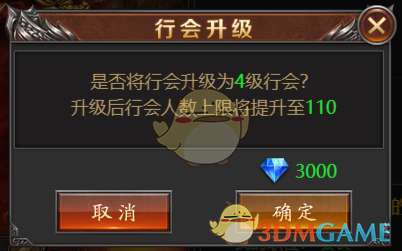 2、行会升级:会长和副会长可升级行会,扩展行会的人数上限
