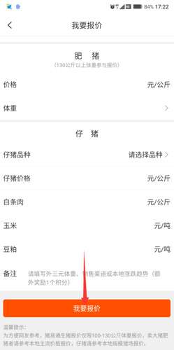 选择好必选的区域,再选择要报价的猪,点击我要报价,你的报价就会发布出去,就会有猪肉厂的厂商来看你的报价并且根据需要购买你的猪啦!