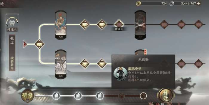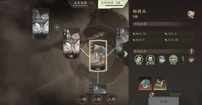 统帅系在游戏当中,为武将单位的分支选择路线,可以强化团队增益技能,例如曹操,在进入到统帅路线后,可以使用“魏武挥鞭”为团队增加攻防效益。