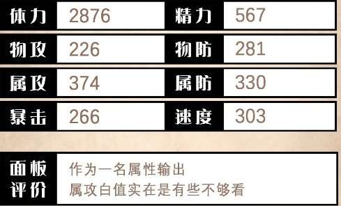 属性输出为什么会有这样的天差地别。此外被动效果都为开场3回合导致3回合后她就等于失去了所有被动支持变成了一条咸鱼。