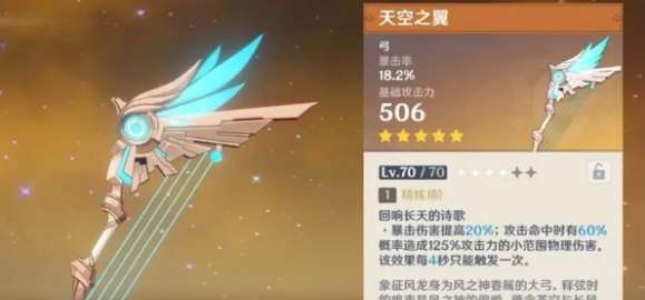 1、天空之翼的获取难度相对较低,这是一把五星常驻武器。