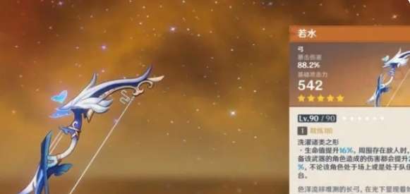 1、若水的泛用性非常高,该武器的攻击白值低,但满级拥有高达88%的暴击伤害加成效果。