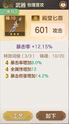 武器:主要加暴击,优先考虑暴击、爆伤、伤害提升、穿透等词条。