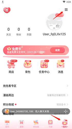 1、打开爱优漫,点击底端的“我的”选项,然后点击“三横”。