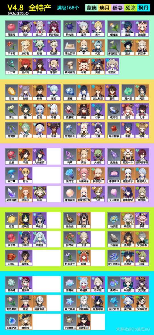【浅蓝字体】一个角色满等级需要:168个特产材料