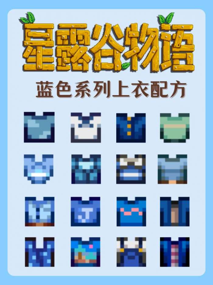 以上就是pk游戏网小编整理带来的星露谷物语蓝色上衣有哪些,蓝色系上衣配方,更多相关游戏攻略,请关注pk游戏网!