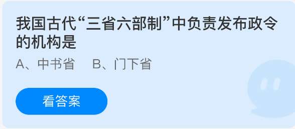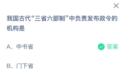 以上就是我国古代“三省六部制”中负责发布政令的机构是?支付宝蚂蚁庄园2026年2月11日答案最新,更多相关攻略,请关注pk游戏网更新!