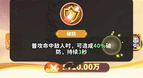 普攻命中敌人时,可造成40%破防,持续3秒,可以帮助C位打出更高伤害,以及配合各种需要破防的技能。