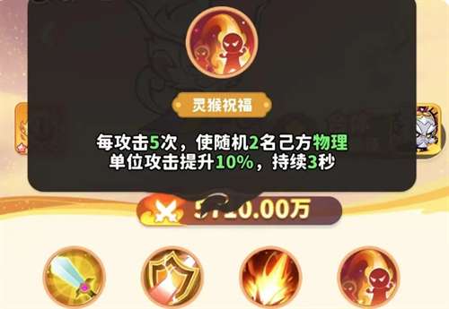 提升全场物理英雄的攻击,最高4层,可以在场上重复放置多个通臂猿猴来获得最大增益。