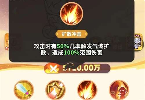使得普攻有几率造成范围伤害。以通臂猿猴的属性来说这个技能的伤害不值一提,但作为合体角色发动后伤害就很可观了。