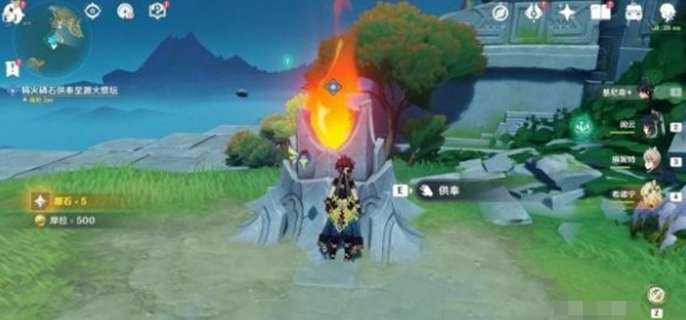 3、跟随任务提示收集两块火磷石,将两块火磷石放入祭坛。